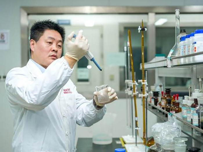 劉孝偉在實(shí)驗(yàn)室做實(shí)驗(yàn)。