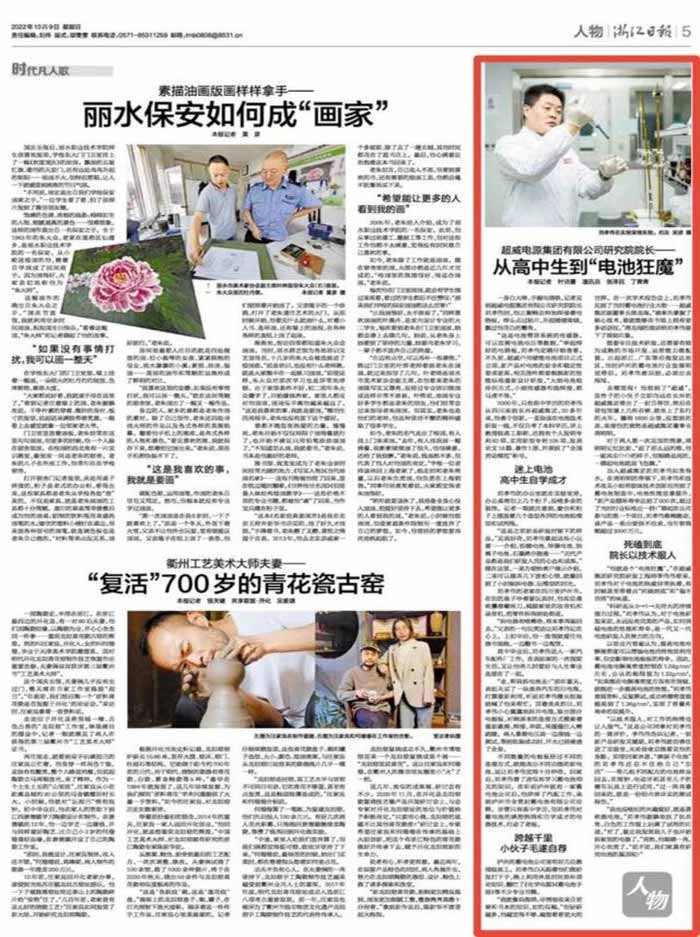 “我就像塊海綿,盡情吸收來(lái)自前輩和書(shū)本的知識(shí),如饑似渴?!钡@研越多,他越覺(jué)得不夠,越想看看更大的世界。在一次學(xué)術(shù)報(bào)告會(huì)上,劉孝偉見(jiàn)到了當(dāng)時(shí)蓄電池行業(yè)大咖——超威集團(tuán)副董事長(zhǎng)周龍瑞?!罢l(shuí)率先掌握了核心技術(shù),誰(shuí)就能夠在市場(chǎng)上擁有更多話語(yǔ)權(quán)?!敝荦埲鸬难葜v給劉孝偉留下了深刻印象。
